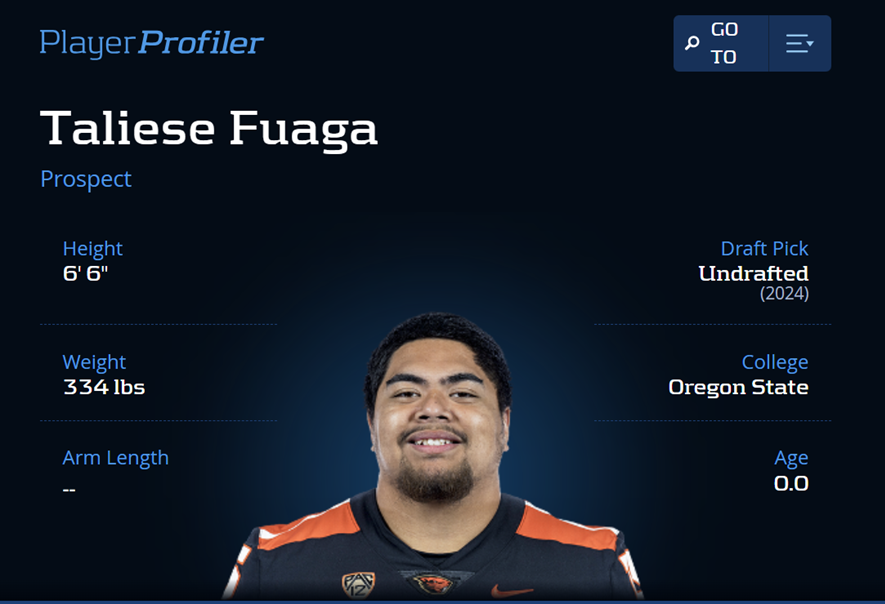 Taliese Fuaga checks in as the third-ranked offensive lineman in the draft class and the top pure right tackle prospect in the 2024 draft class.