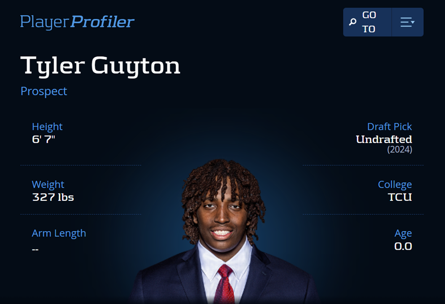 Guyton flashed great athleticism in his lone season starting at right tackle in Oklahoma, allowing zero sacks and 12 pressures in 663 snaps. His technique is raw, but his build and athleticism will play at the NFL level. Guyton has a chance to find himself in the first round of the NFL draft based on tools alone, but needs some game experience (or patient development) to truly reach the potential his build suggests he can hit.