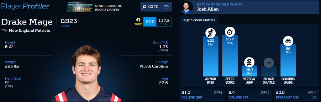 Drake Maye‘s Advance Stats & Metrics profile