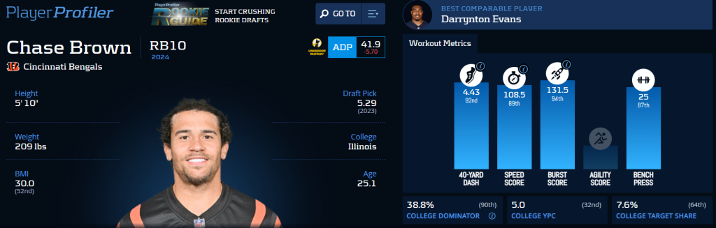 Chase Brown‘s Advance Stats & Metrics profile