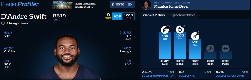 D’Andre Swift‘s Advanced Stats & Metrics profile