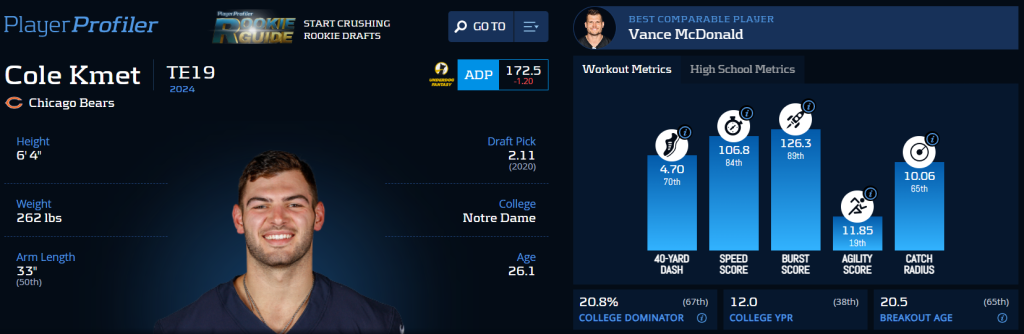 Cole Kmet‘s Advance Stats & Metrics profile