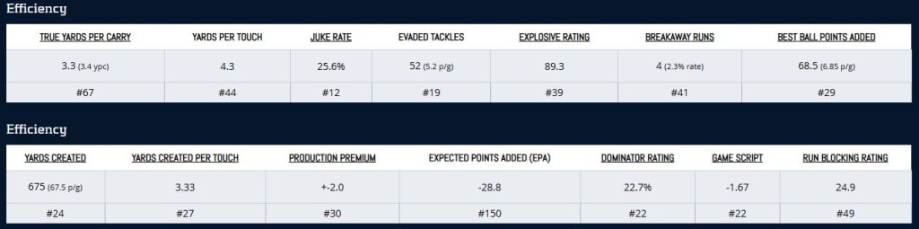 That doesn’t leave much at all for Johnson, who had just 69 rushing yards on 28 carries (2.5 YPC) as a rookie. Barring an injury, it’s hard to envision Johnson doing much in Year 2.