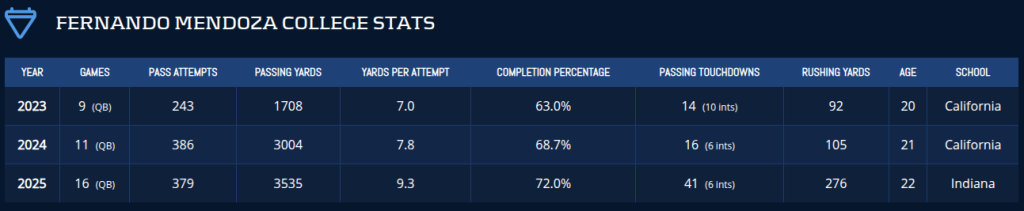 Fernando Mendoza‘s Collegiate Stats
