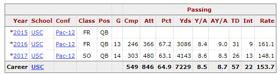 Darnold by all accounts has the size, speed, and talent to produce at the NFL level. The problem is he quite obviously lacks the mental aspect to allow him to read defenses and take advantage of his skillset.