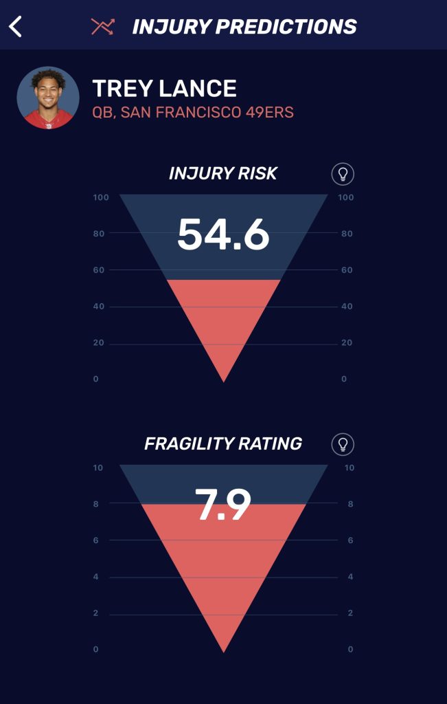Here’s what our physical therapists had to say about Trey Lance’s outlook for 2023 via the Injury Finder