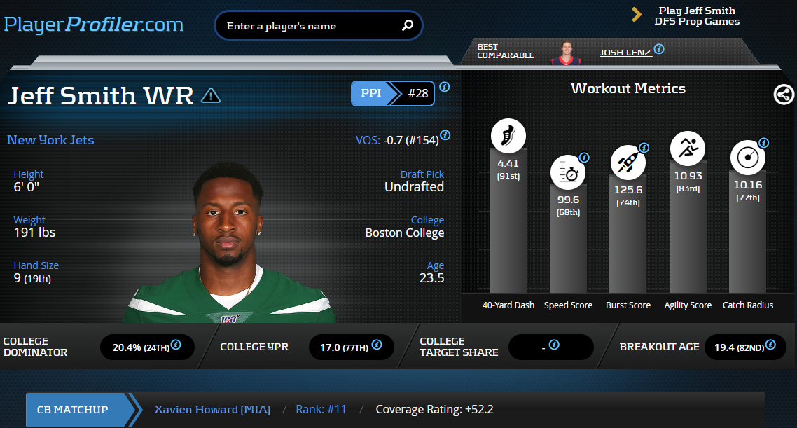 We previously hinted at Jeff Smith‘s Air Yards, and this week he finally finds himself on the list. The second-year wide receiver has averaged 10 targets across his two active games with the Jets. Also, he has a 100.0-percent Snap Share in each of these games.