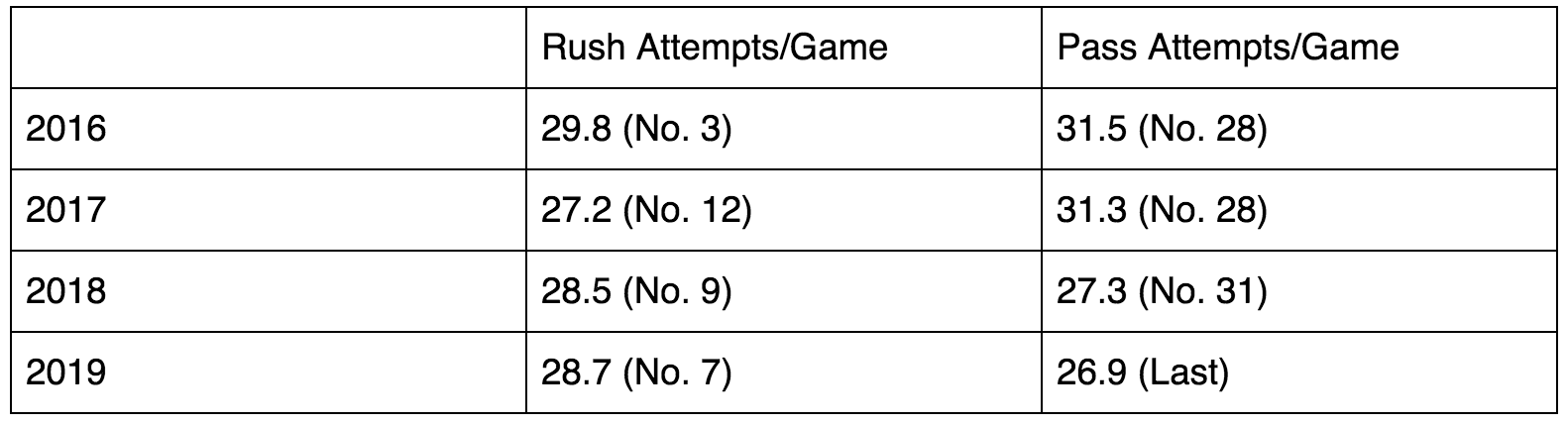 Ever since Henry entered the league in 2016, the Titans have favored a run-heavy offense, finishing top-12 or better in rushing attempts per game. Since Henry became the backfield leader in 2018, they’ve ranked No. 9 and No. 7 in rushing attempts per game. The offense runs through Henry, and that’s not changing anytime soon.