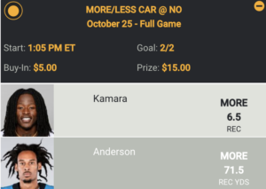 K.I.S.S … KEEP IT SIMPLE STUPID. After trying to get fancy with a terrible Jets-Dolphins game in Week 6, we will use this K.I.S.S approach going forward. Never did I think an elementary school quote would work in Props, but here we are. We’re sticking to the More/Less contests in Week 7, and taking advantage of clear usage patterns.