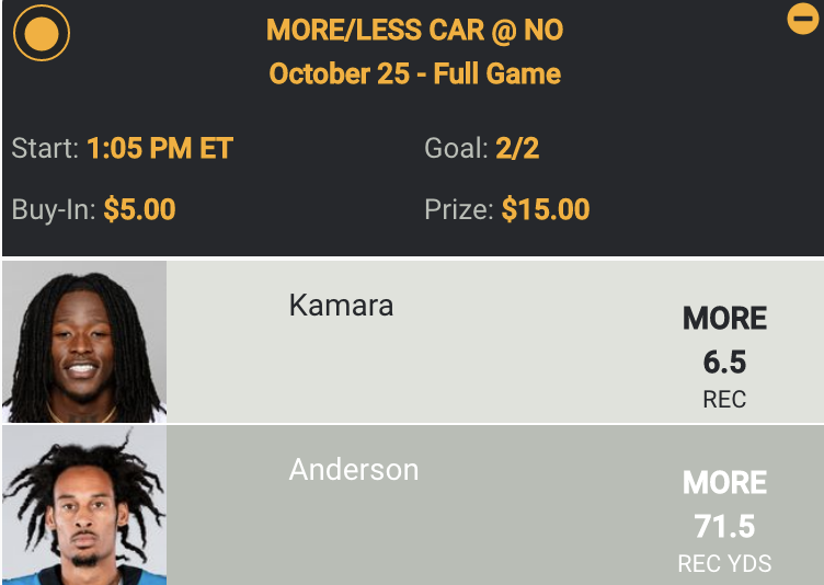 Prop: Alvin Kamara Over 6.5 Receptions, Robby Anderson Over 71.5 Yards.