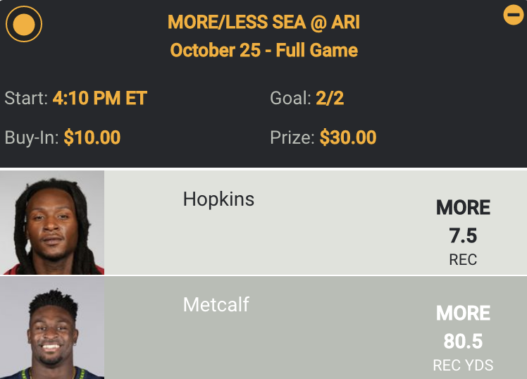 Prop: DeAndre Hopkins Over 7.5 Receptions, D.K. Metcalf Over 80.5 Yards.
