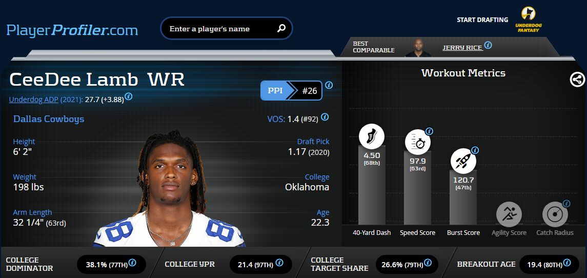 Dallas averaged 42.7 (No. 1) Team Pass Plays Per Game in 2020, and Lamb commanded 621 (No. 2) slot snaps. These statistics will remain strong in 2021 due to the continuity of the roster and coaching staff. Attack and obtain Lamb for $70, which is $25 below market value for a Tier 1 WR. Add $10 to your template for the WR1 slot, shed $5 from your WR2, and $5 from your WR3.
