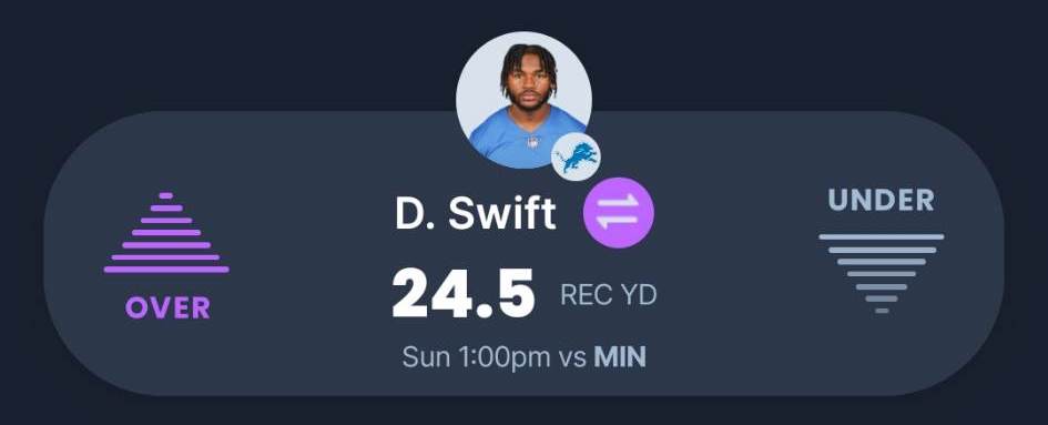 Pick No. 2 (Sleeper): D’Andre Swift (DET) OVER 24.5 receiving yards