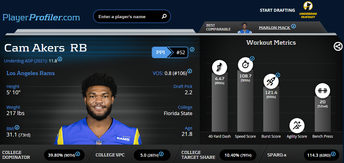 Cam Akers climbs into the RB4 spot in the Player Profiler Dynasty Rankings ⚡