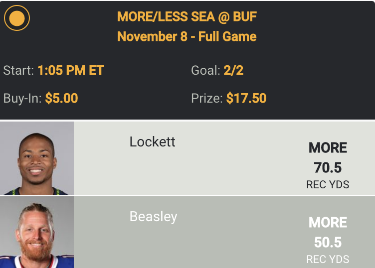 Prop: Tyler Lockett Over 70.5 yards, Cole Beasley Over 50.5 yards.