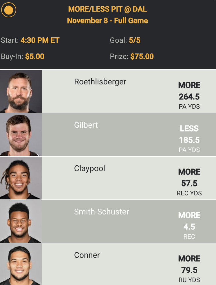 The Pittsburgh Steelers are 6-0 and rolling, while Ben Roethlisberger has thrown for over 260 yards just twice this season. Dallas’ top cornerbacks are currently ranked No. 60 and No. 70 overall in PlayerProfiler’s cornerback rankings, with the team ranked No. 22 in receiving yards allowed. James Conner has finished with over 100 total yards in four of six games and has logged 498 (No. 10) rushing yards.