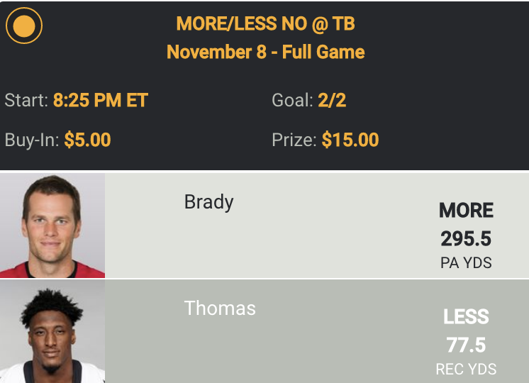 Prop: Tom Brady over 295.5 yards, Michael Thomas under 77.5 yards.