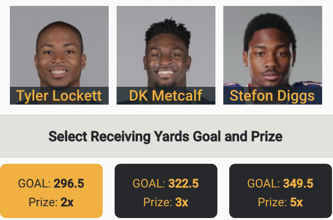 Prop: Tyler Lockett, D.K. Metcalf, and Stefon Diggs Over 296.5 yards.