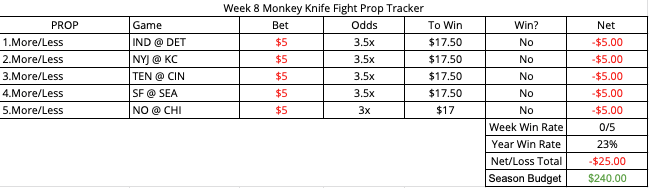 Finishing 0-of-5 on Sunday dropped our season total by $25, we currently sit at $240.