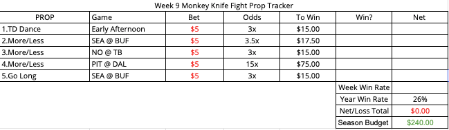 For the second consecutive season, RotoUnderworld is partnering up with Monkey Knife Fight to bring the best daily fantasy prop options to you on a weekly basis. MKF is unlike any other Daily Fantasy game in the industry. No million dollar tournaments with irrational odds, or outrageous bookie fees. Monkey Knife Fight offers NFL props anyone can wager on. From over/under fantasy points to creating a three-headed touchdown dance, MKF has it all. Follow along each week as we break down the Top-5 props in the NFL. Use PROMO CODE: UNDERWORLD when you deposit to receive a 100-percent Instant Match Bonus up to $50.