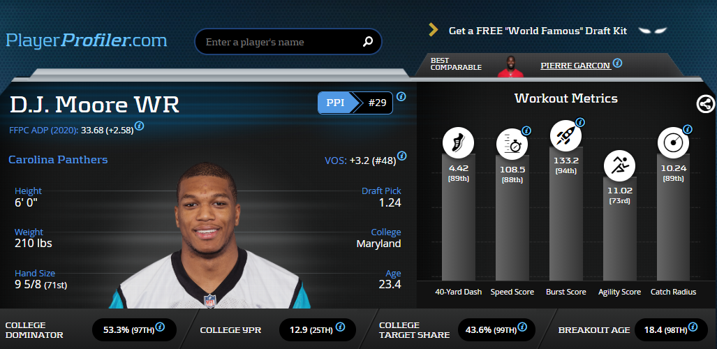 Check out D.J. Moore’s 2020 Projection on PlayerProfiler’s “World Famous” Draft Kit: