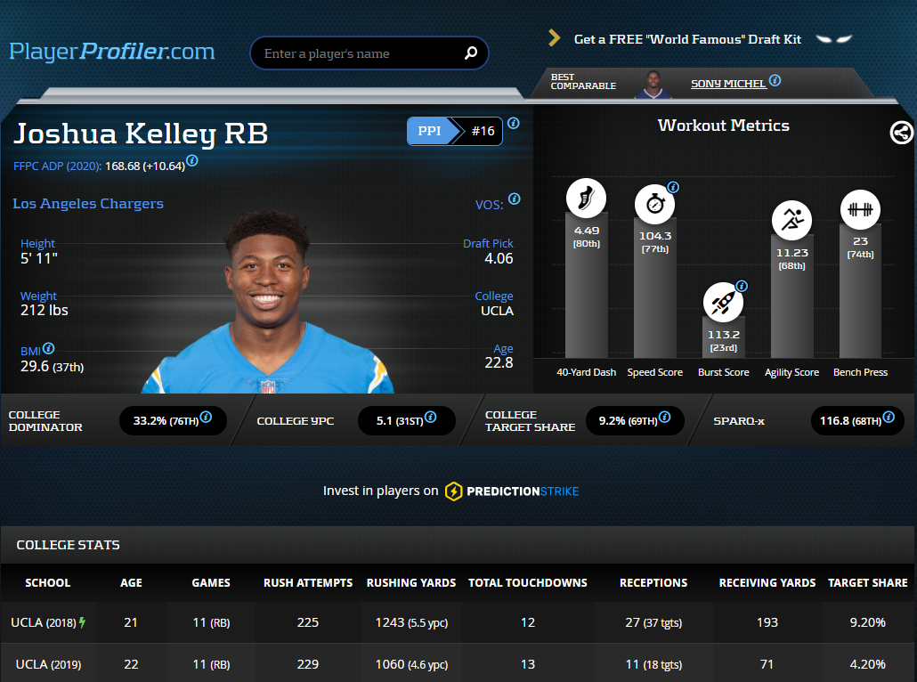 There is no indication the Chargers believe Austin Ekeler is an every-down, workhorse back. From Weeks 5-17 of the 2019 season, Ekeler saw double-digit carries just once. This isn’t to say he won’t once again be an effective fantasy scorer, but rather that there will be room for two running backs to thrive in the offense. Enter Joshua Kelley, a 22-year-old rookie who handled 454 carries in two seasons at UCLA.