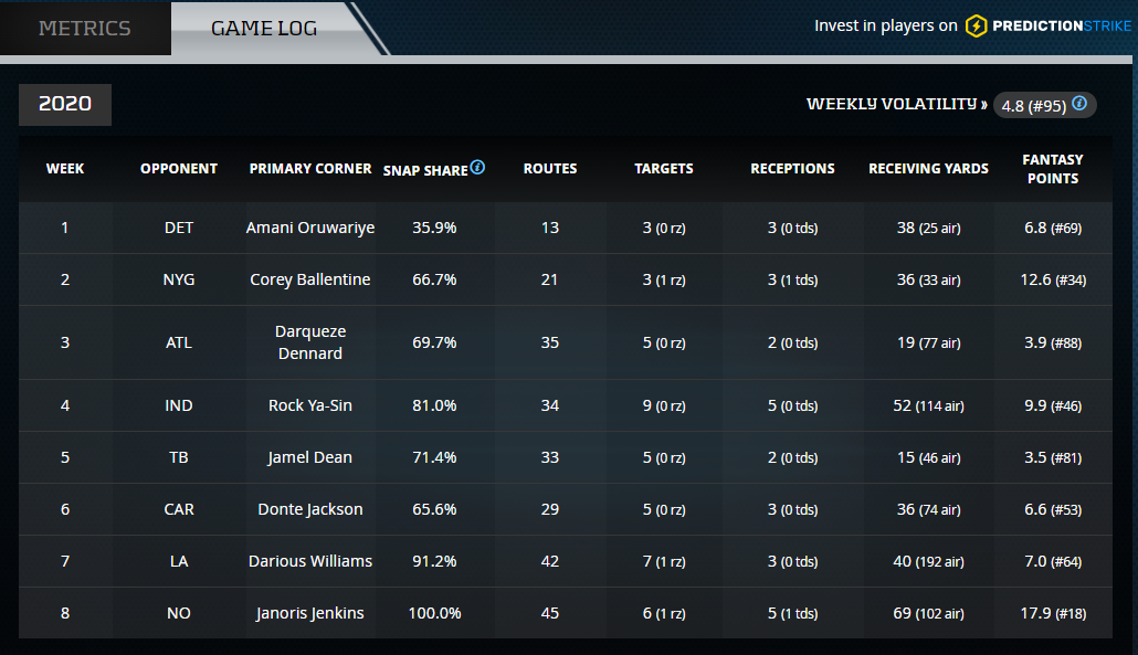 With little touchdown upside or big play ability, Meyers lacks the “high value” fantasy touches. Still, there are worse plug-and-play options than a starting wide receiver for Cam Newton.