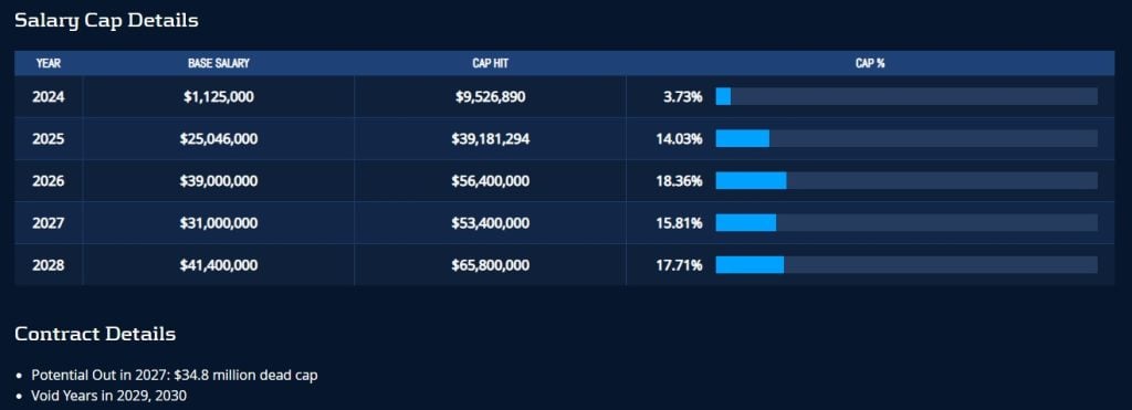 Looking at it from a longer lens, Tua also makes some sense for rebuilders or managers who are retooling. Still only 27, Tua is virtually guaranteed to be the starter in Miami for 2026 because of his contract. His cap hit next year is $56.4 million, and the Dolphins would be on the hook for $99.2 million in dead money if they were to release him before June 1st. That number goes down to $67.4 million if they designate him as a post-June-1st cut, but that’s still more than his salary. It just doesn’t work from a numbers perspective to get rid of him next year. The only potential out for Miami could come in 2027 when the dead cap hit drops down to $34.8 million.