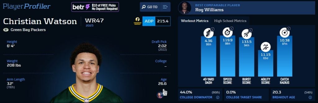 Christian Watson‘s Advanced Metrics