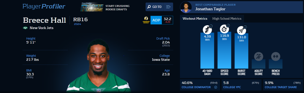 This may be the most controversial inclusion on this list, especially after Breece Hall disappointed in 2024. Hall finished just 17th at the position in points per game with 15.1. Despite a disappointing season in a broken offense, Hall remains a do-it-all back with elite receiving ability. He finished fourth in receptions and receiving yards among running backs with 57 and 483 yards, respectively.
