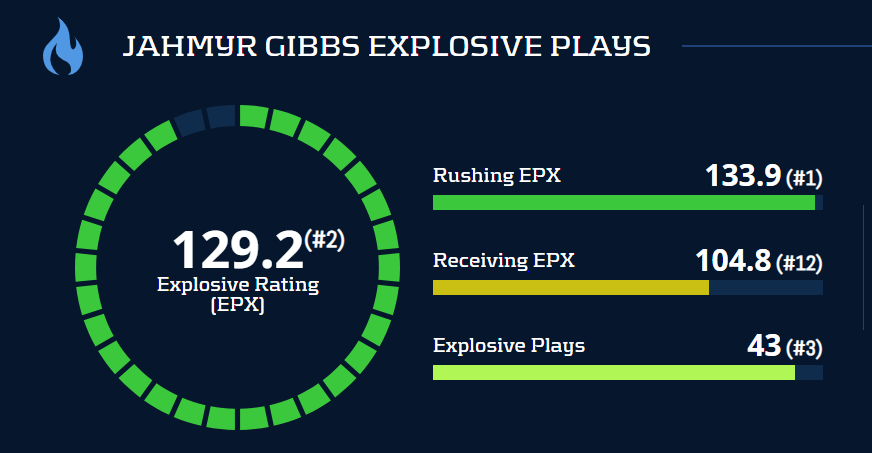 Gibbs was the leader at the running back position in rushing epx (133.9), ranking third in explosive plays (43) and first in breakaway runs(25). He combines game-breaking speed with ruthless efficiency and elite receiving ability, making him a dual-threat nightmare for defenses. His blend of youth, efficiency, and an elite supporting cast make him a must-have RB cornerstone.