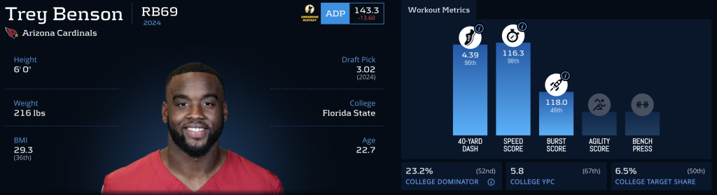 Trey Benson (RB34) – The Perfect Zero RB Candidate