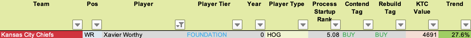 Xavier Worthy is not a target in Dynasty Trades because he ran a fast 40-yard dash or landed on the Chiefs. He’s a buy because he ran a fast 40-yard dash, landed on the Chiefs, and has an Elite level prospect profile.