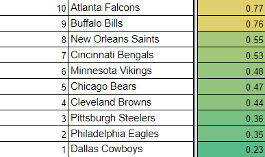 If a team is winning by multiple touchdowns, they are likely running the ball late in games. It’s safer and burns more clock. It’s not as prevalent a strategy as it was the ’90s, but teams still do it. The Game Script creates an opportunity for volume and breakaway runs from the backs. It also creates turnover and sack opportunities for the defense as the opposing team will undoubtedly be throwing to get back into the game.