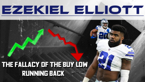 Buying low on Ezekiel Elliott is not analogous to investing in an undervalued stock. Instead, you are buying an overvalued stock, and assuming others will make suboptimal valuations allowing the stock to rise anyhow. If this is how you wish to play dynasty, I encourage you to place your entry fees on Tesla instead.