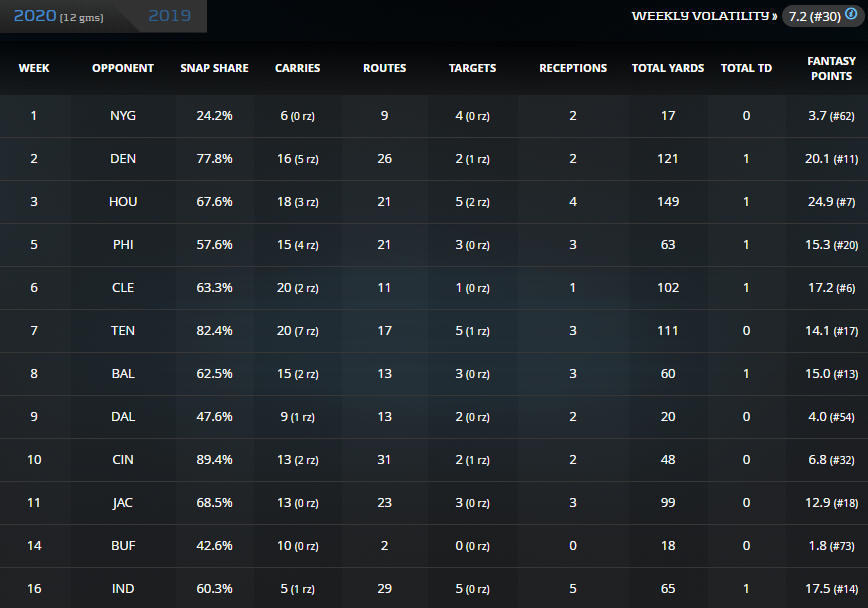 Weighted Opportunities Per Game: 10.9 (No. 33 among qualified running backs)