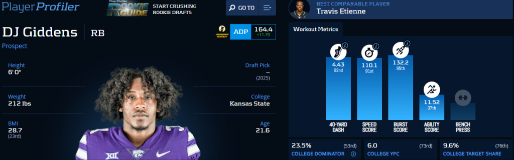 DJ Giddens‘ Advance Stats & Metrics Profile