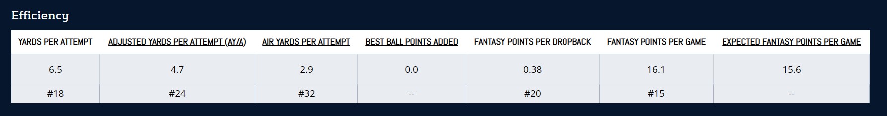 Fields’ rushing upside likely gives him a solid floor as a low-end QB1. However, the Bears appear to be one of the worst teams in the NFL and are likely going to have a high pick in the 2024 NFL draft. If Fields doesn’t improve quickly, they will very likely move on in favor of a rookie signal caller.