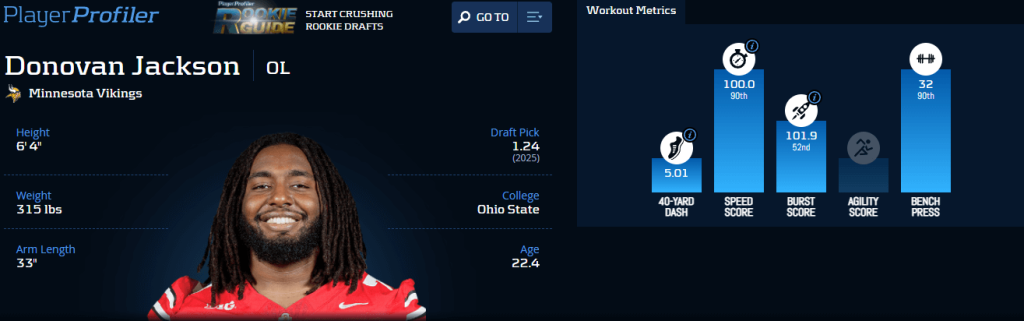 The Vikings also used their first-round pick on Ohio State guard Donovan Jackson. Jackson was the top interior offensive lineman in his recruiting class, but never developed into that tier of prospect. However, he’s an excellent run blocker and had a stellar run as Ohio State’s left tackle after Josh Simmons was injured.