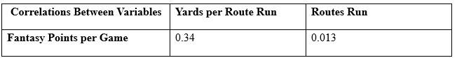 Analyzing the correlation of fantasy points per game to a series of variables such as draft capital, opportunity, and production areas, most had a low correlation to FPPG. The highest correlation was with Yards Per Route Run: 0.34, meaning the more Yards Per Route Run a player gained, the greater chance for higher fantasy production. Interestingly, the smallest correlation was to routes run. Tight ends can be on the field and run routes, but because of their dual role as pass-catchers and blockers, getting opportunities on those routes is key.