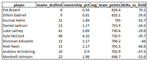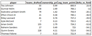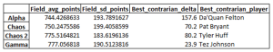 In fact, “Gamma” had the weakest “best contrarian delta,” meaning among players drafted on less than 5% of teams, which teams that drafted them outscored the field average by the largest margin.