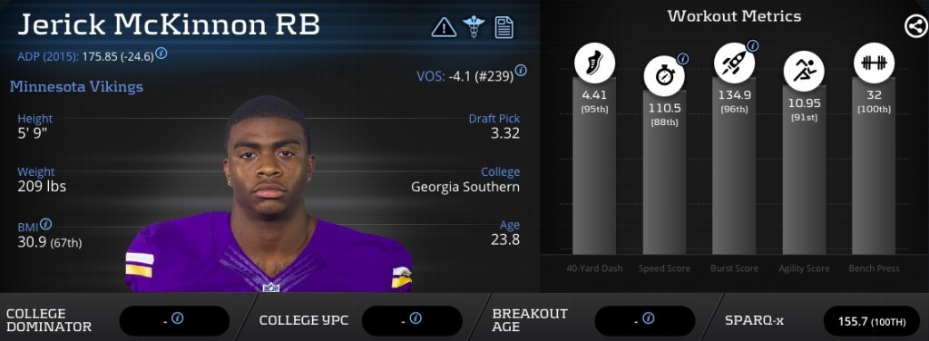 With dynasty football, the simple truth is that we can’t reasonably predict what Jerick McKinnon’s situation will look like in 2017 and beyond, which is why you need to acquire this talented runner right now, as his athletic measurables are on par with LaDainian Tomlinson’s and David Johnson’s.