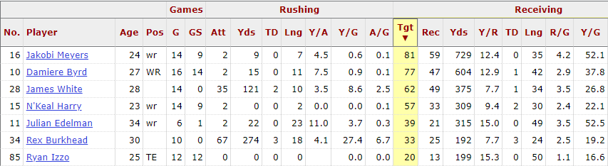 I’m less concerned with the impact on Smith’s Lifetime Value than Hunter Henry‘s for two reasons. One, Smith has a track record of producing 10.0 (No. 12) Fantasy Points per Game, despite a majority of his opportunity metrics landing outside the top-15. Second, Henry’s past two seasons were back-end TE1 seasons, but were driven by heavy opportunity-based metrics. Most notable, Henry’s previous team finished with 41.3 (No. 5) and 39.4 (No. 10) Team Pass Plays Per Game in 2020 and 2019, respectively. In those two seasons, he finished with 92 (No. 7) and 76 (No. 12) Targets. Meanwhile, Smith’s previous team finished with averages of 31.8 (No. 30) and 31.5 (No. 30) Team Pass Plays Per Game.