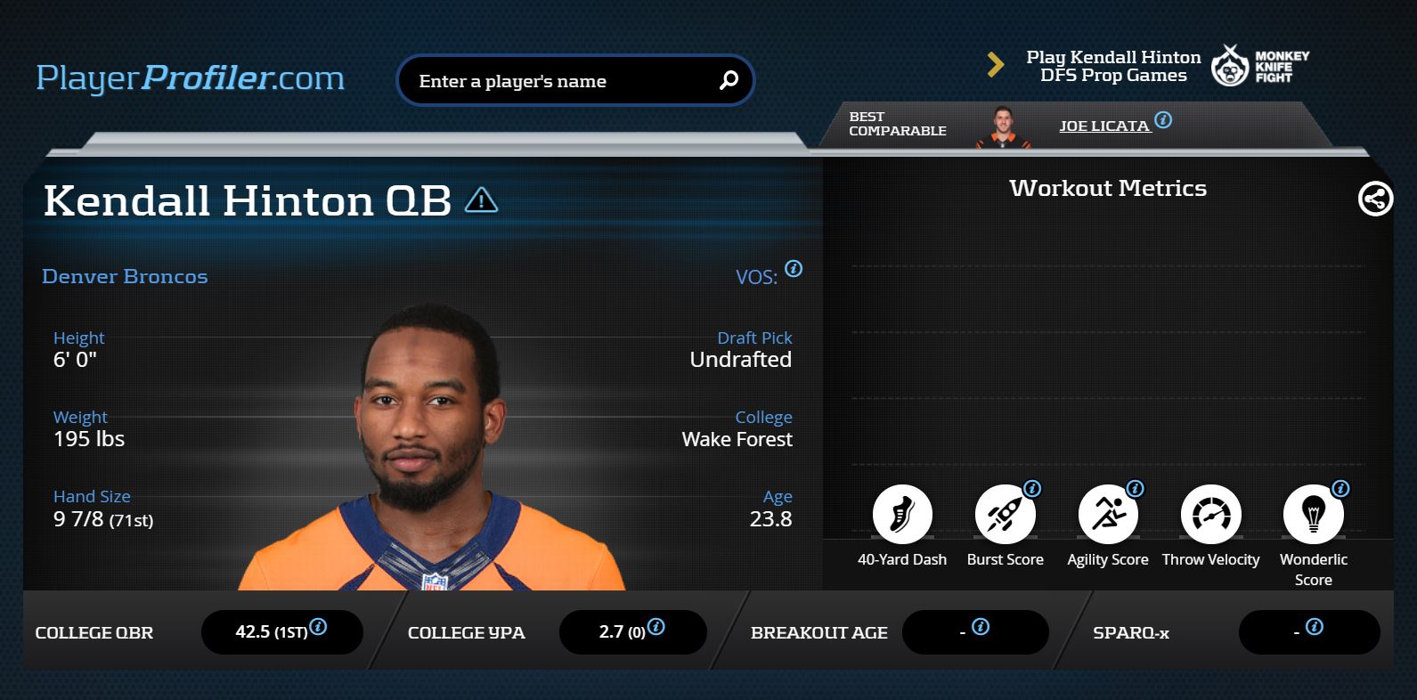 Hinton completed 1-of-9 passes for 13 yards, no touchdowns and two interceptions for a 0.1 QBR. His lone completion went to Noah Fant. Denver recorded 113 total yards of offense in the 31-3 loss.