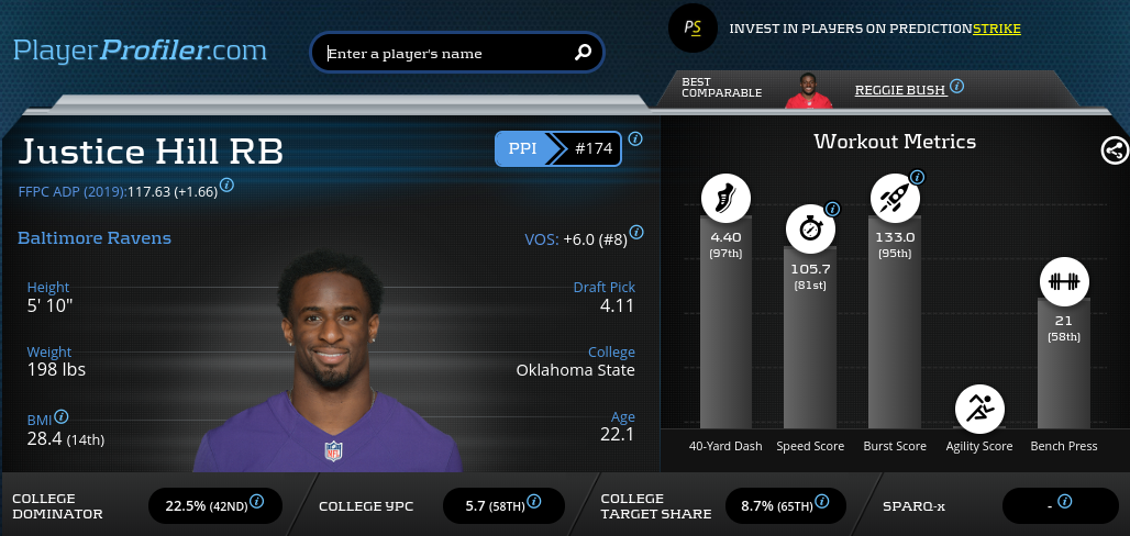 For the final bargain buy of 2019, we reach a little deeper into the barrel to find ourselves an elite pass catcher and explosive talent out of the backfield in Ravens running back Justice Hill.