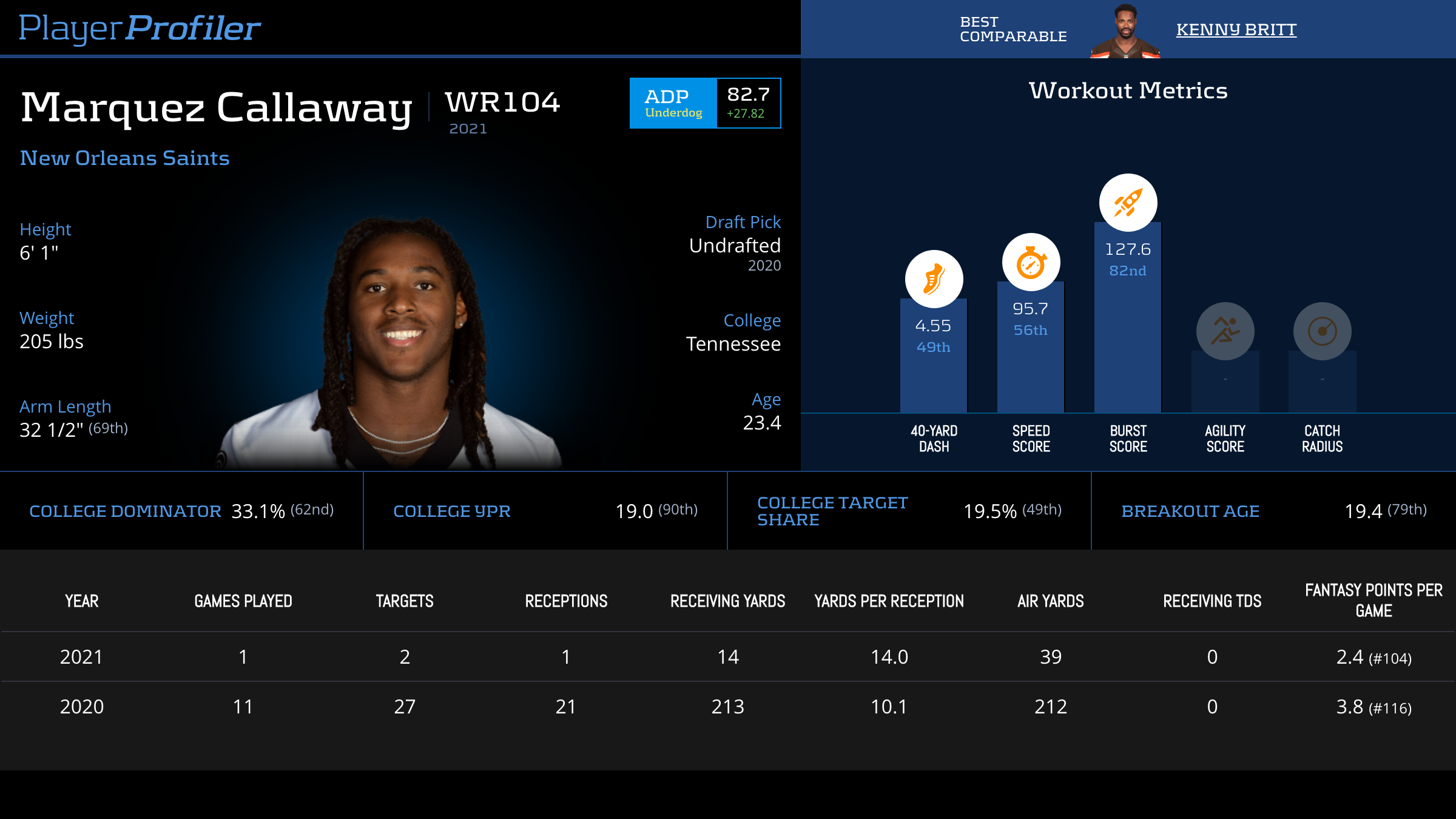 Marquez Callaway WR1 season has gotten off to a rocky start. Callaway has 3 receptions on 6 targets in two weeks.