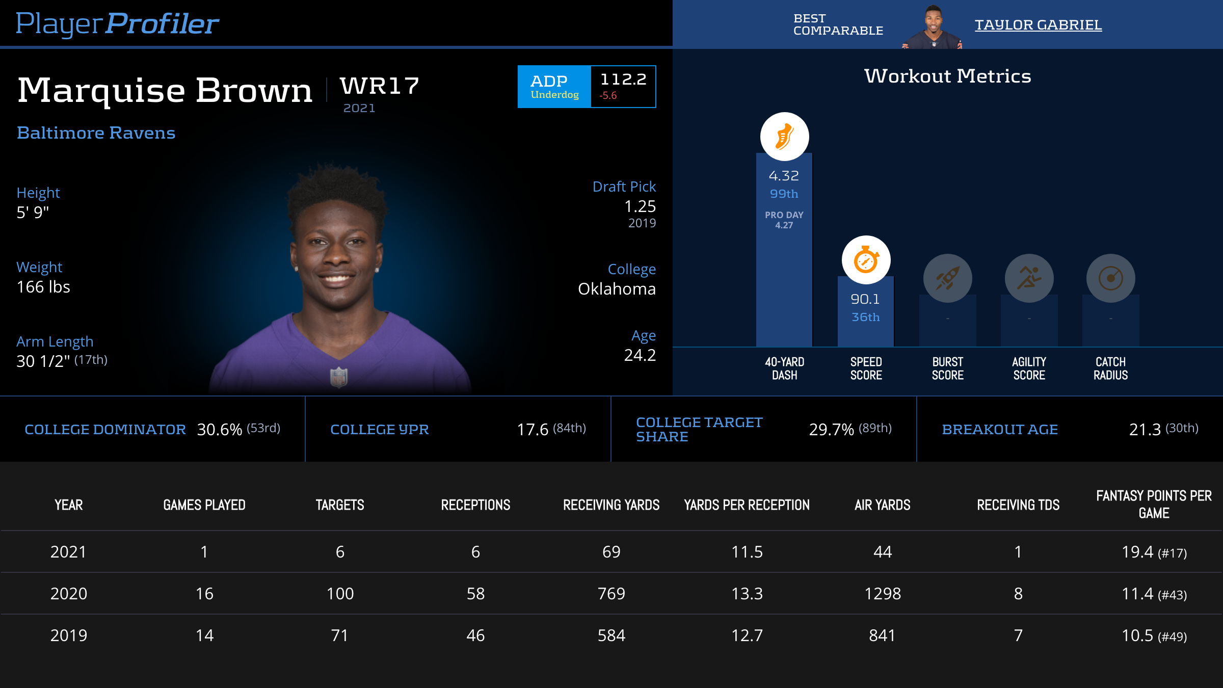 Brown specifically has 6 receptions and a touchdown in each of the first two weeks of the season. Both are speedy, with 40-yard Dashes in the 99th and 86th-percentiles, respectively. They face a Lions secondary without Jeff Okudah that allowed 314 pass yards week 1 and 255 yards with 4 passing touchdowns in Week 2. With the Lions front seven trying slow down Baltimore’s effective rushing attack, the inexperienced secondary will have its hands full attempting to contain the speedy Brown and Watkins. Expect both to continue to get high volume targets and production.