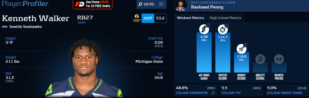 Kenneth Walker III Advanced Stats & Metrics Profile