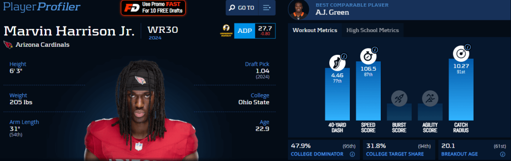 Marvin Harrison Jr. Advanced Stats & Metrics
