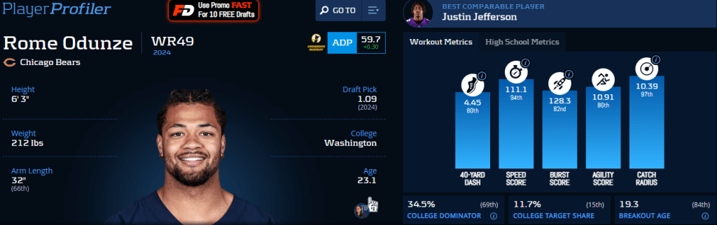Odunze will benefit greatly from Chicago’s new head coach, Ben Johnson, in 2025. Johnson has already heaped praise upon Odunze, calling him a prototypical X receiver who can win contested matchups and is a detailed route runner.